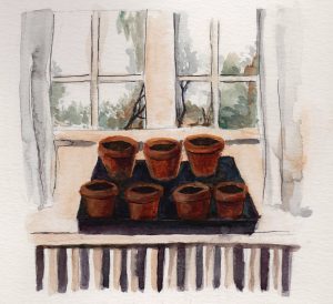 Daisy had heard that soil would be needed. It was important that the soil was pure and free from disease or things that could damage the seeds. A tray was gathered with seven little clay pots. As Daisy lived in a place where the winters are cold and the growing season is relatively short, seeds often were started inside. When the plants were stronger, they were moved outside when the weather was more hospitable.